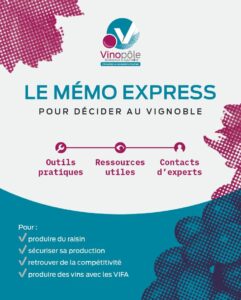 Le Mémo express pour décider au vignoble rassemble, en un seul document, les principaux outils d’aide à la décision, les ressources techniques de référence et les contacts d’experts du Vinopole pour accompagner les viticulteurs dans leurs choix quotidiens. Production du raisin, protection du vignoble, adaptation au changement climatique, compétitivité des exploitations ou choix variétaux : ce mémo vous permet, d’un simple coup d’œil, d’identifier où trouver la bonne information, le bon outil ou le bon interlocuteur, au bon moment. Un support pratique, conçu pour un usage terrain, afin de sécuriser vos décisions et gagner en efficacité.